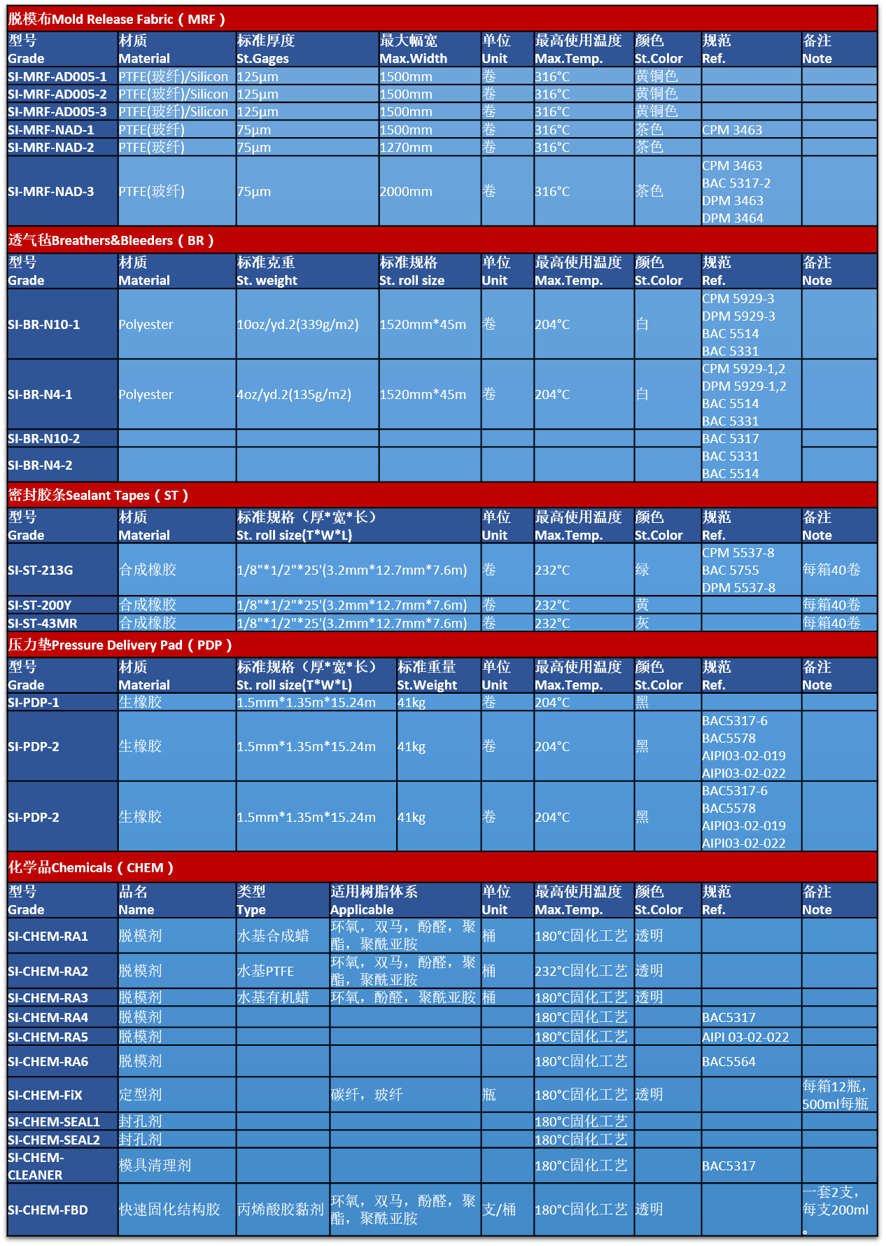 世本复材公司发源于航空制造,所以长期以来专注于180度以上热压罐固化成型工艺。在此基础上,还开发了150°C中温真空导流系列辅料。目前,有接近115种工艺辅料及辅助用具已经测试并且得到反馈。世本复材公司建立了自己的QMC(合格材料目录)清单,客户可以放心地在清单内选择适合自己工艺的材料。 SIBENS is also interested in new materials development. New materials are not only giving better operability, but also help SIBENS remain invincible in the competitive market. SIBNES is benefit from the growth and R&D projects. Therefore, SIBENS is quite open-mind and welcome new materials to enter QMC all over the world. 世本复材公司对新材料的开发也兴趣十足。新材料不仅具有更好的操作性,也帮助世本复材公司在市场中立于不败之地。QMC的体系是开放性的,欢迎各行业及全球的材料生产商加入。